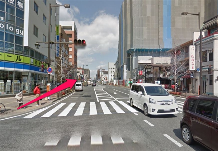 角に朝鮮飯店がある交差点を渡り、右折します。